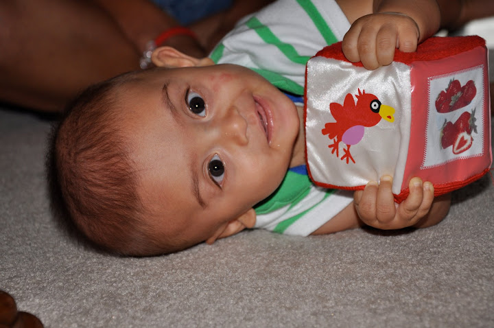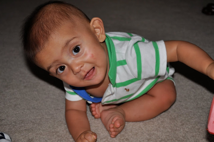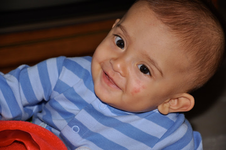 Jameson: "No, Mom, I think you're mistaken, I haven't been eating a teething biscuit"